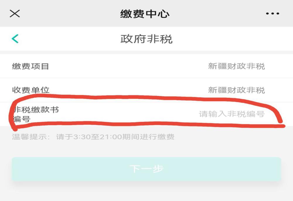 缴款码,点击“下一步”。