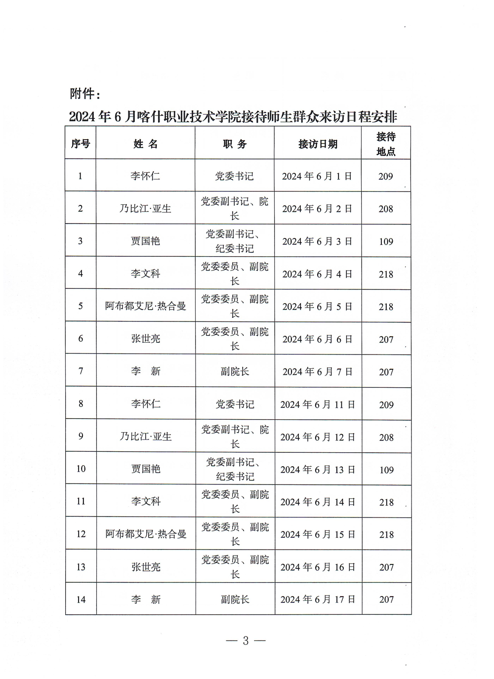 2024年6月领导接待来访日程安排