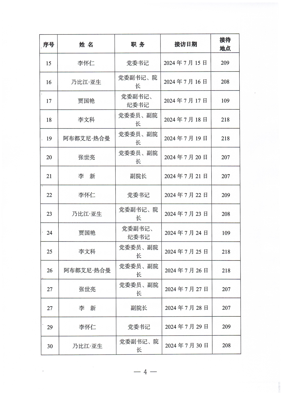 2024年7月领导接待来访日程安排