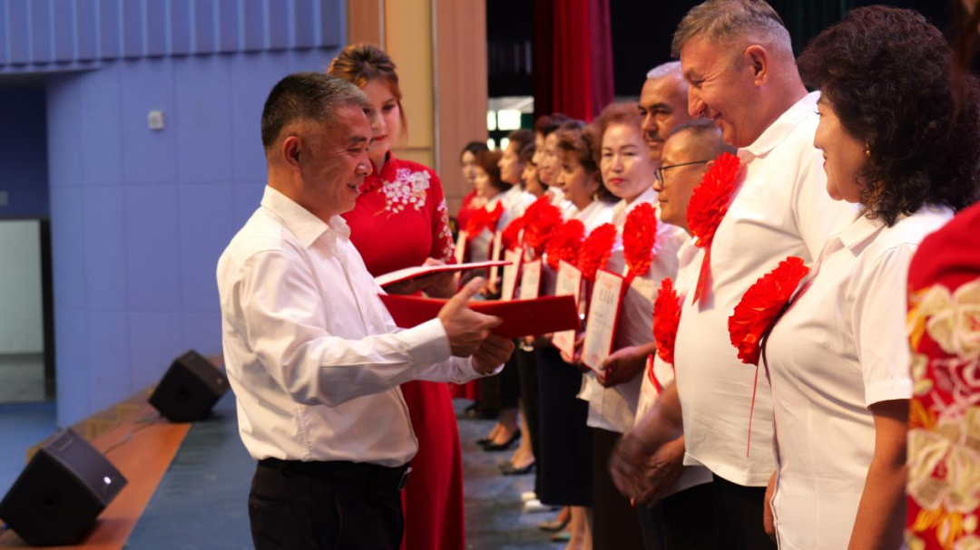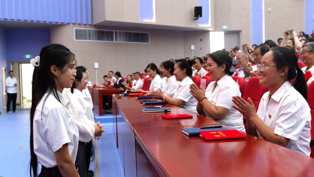 乃比江・亚生宣读表彰决定,随后举行隆重的颁奖仪式。大会分别为2025年自治区职业院校技能大赛教学能力比赛获奖团队、世界职业院校技能大赛总决赛争夺赛铜奖团队的指导教师颁发荣誉证书,表彰他们在技能竞赛领域为学院赢得的荣誉;同时为荣获学院2025年“师德标兵”“优秀教育工作者”“优秀班主任”“基层先进个人”“优秀银龄教师”“优秀支教教师”等荣誉称号的教职工颁奖,激励广大教职工见贤思齐、奋勇争先。