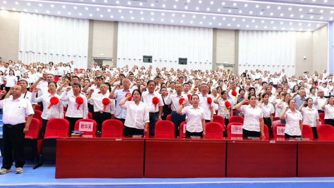 随着领誓声响起,全体教职工缓缓举起右拳,手臂挺拔如松,掌心紧握似铁,目光坚定。“我志愿成为一名人民教师,忠诚党的教育事业,遵守教育法律法规,履行教书育人职责,引领学生健康成长……”铿锵有力的誓言穿透会场,从班子成员到二级学院党总支书记、直属党支部书记,再到每一位一线教职工,每一个字都饱含着对“塑造灵魂、塑造生命、塑造未来”伟大事业的敬畏,每一声诵读都传递着“为党育人、为国育才”的坚定信念,让“大力弘扬教育家精神”的要求深深扎根于每一位教职工心中。