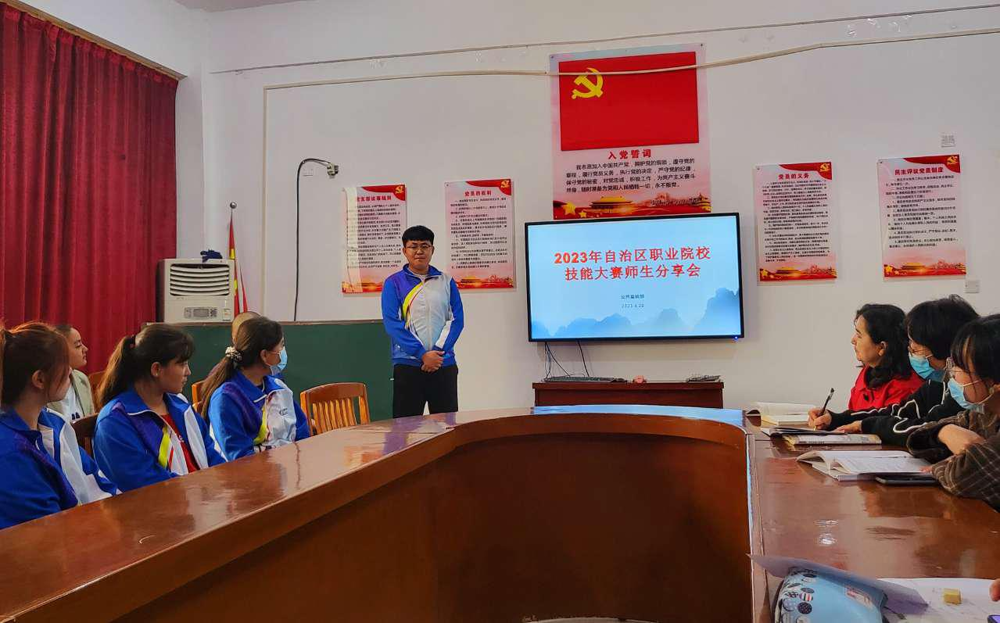 2023年4月20日公共基础部开展了“2023年自治区职业院校技能大赛师生分享会”。自治区职业院校英语口语技能大赛二等奖布威艾洁尔·阿不都克热木老师,WPS赛项指导老师杨勇,以及3名参赛的同学先后现场进行了展示分享。