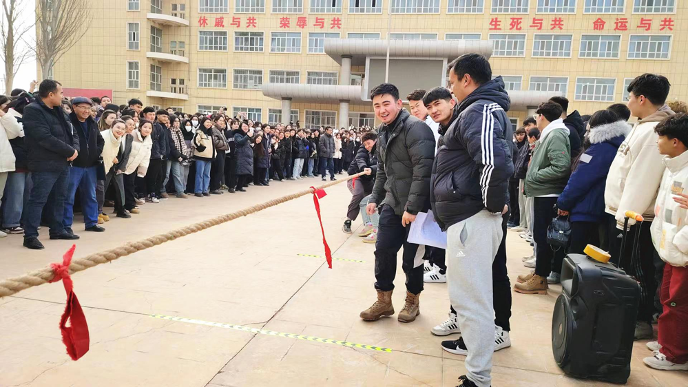 为纪念“一二·九”抗日救亡运动88周年,传承红色基因,赓续红色血脉,弘扬爱国精神。增强班级凝聚力,提高学生的身体素质,2023年12月14日由公共基础部、学生处主办、各系学工办承办的Beat365中文官方网站青春爱运动,健康强中国,纪念“一二·九”拔河比赛在行政楼前广场、田径场正式拉开帷幕。