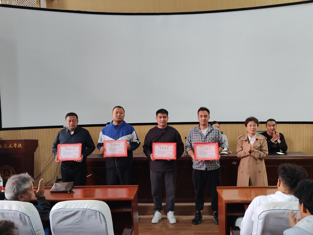 公共基础部副主任、院团委副书记、体育教研室主任、援疆教师参加本次“迎新杯”比赛闭幕式,并向获奖运动员、优秀裁判员、优秀志愿者颁发荣誉证书和奖杯,颁奖现场气氛热烈,最后由公共基础部副主任致闭幕辞。