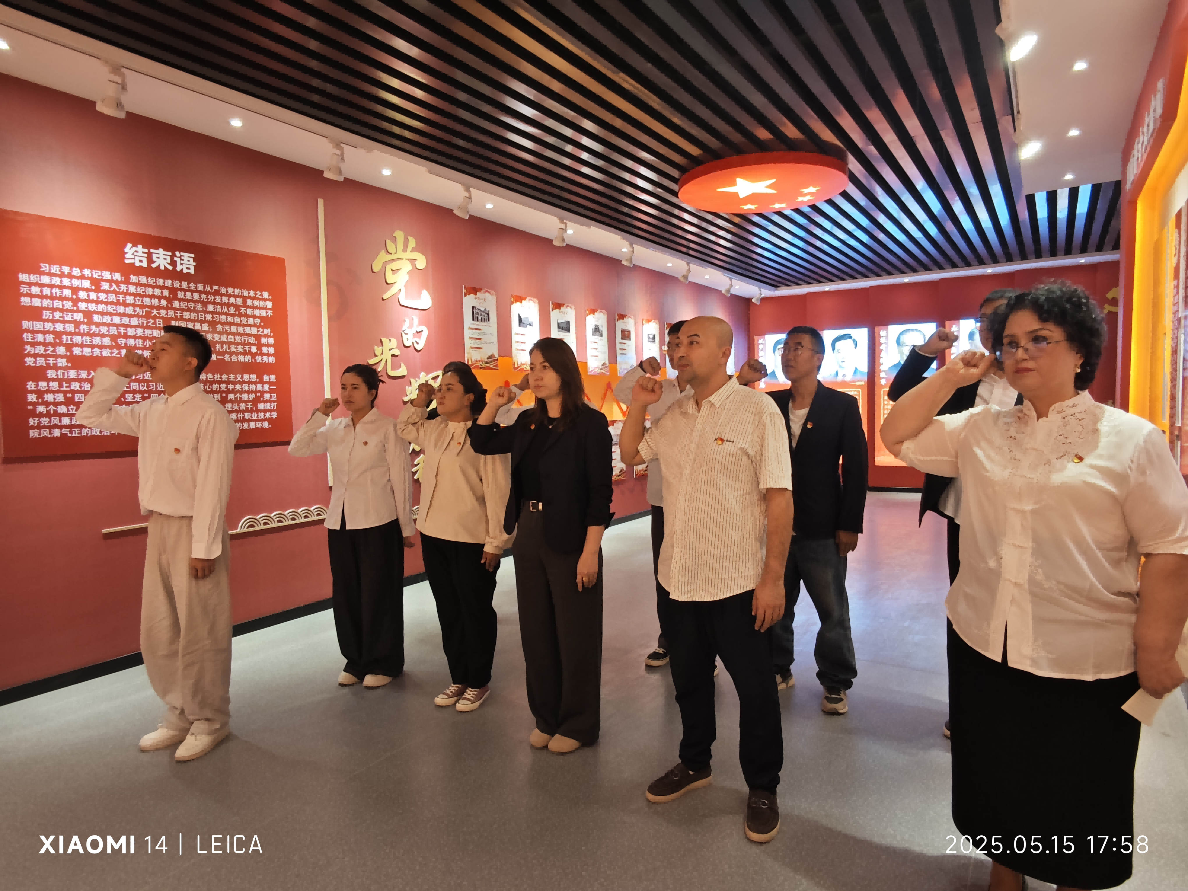 参观结束后,张熊老师又带领全体党员重温入党誓词,以铿锵誓言表达永葆清正廉洁政治本色的坚定决心。誓词中“为共产主义奋斗终生,随时准备为党和人民牺牲一切”等内容,再一次点燃了老师们心中追求党的事业的熊熊火焰,在共同的誓言中,党员们增进了对党的认同感和归属感,时刻提醒自己要牢记党员身份和使命。