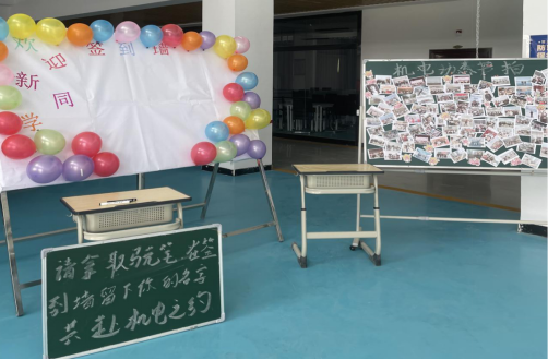 现场特别设置的“机电动态”照片墙,汇集了学院近年来各类精彩活动影像,涵盖学术竞赛、文体项目、师生互动与实践实训等多个场景,生动呈现了学院浓厚的学术氛围、丰富的课余生活与积极向上的精神风貌。新生们纷纷驻足浏览、交流交谈,通过影像故事直观感受学院特色与文化凝聚力,为他们更快融入新环境奠定了良好基础。