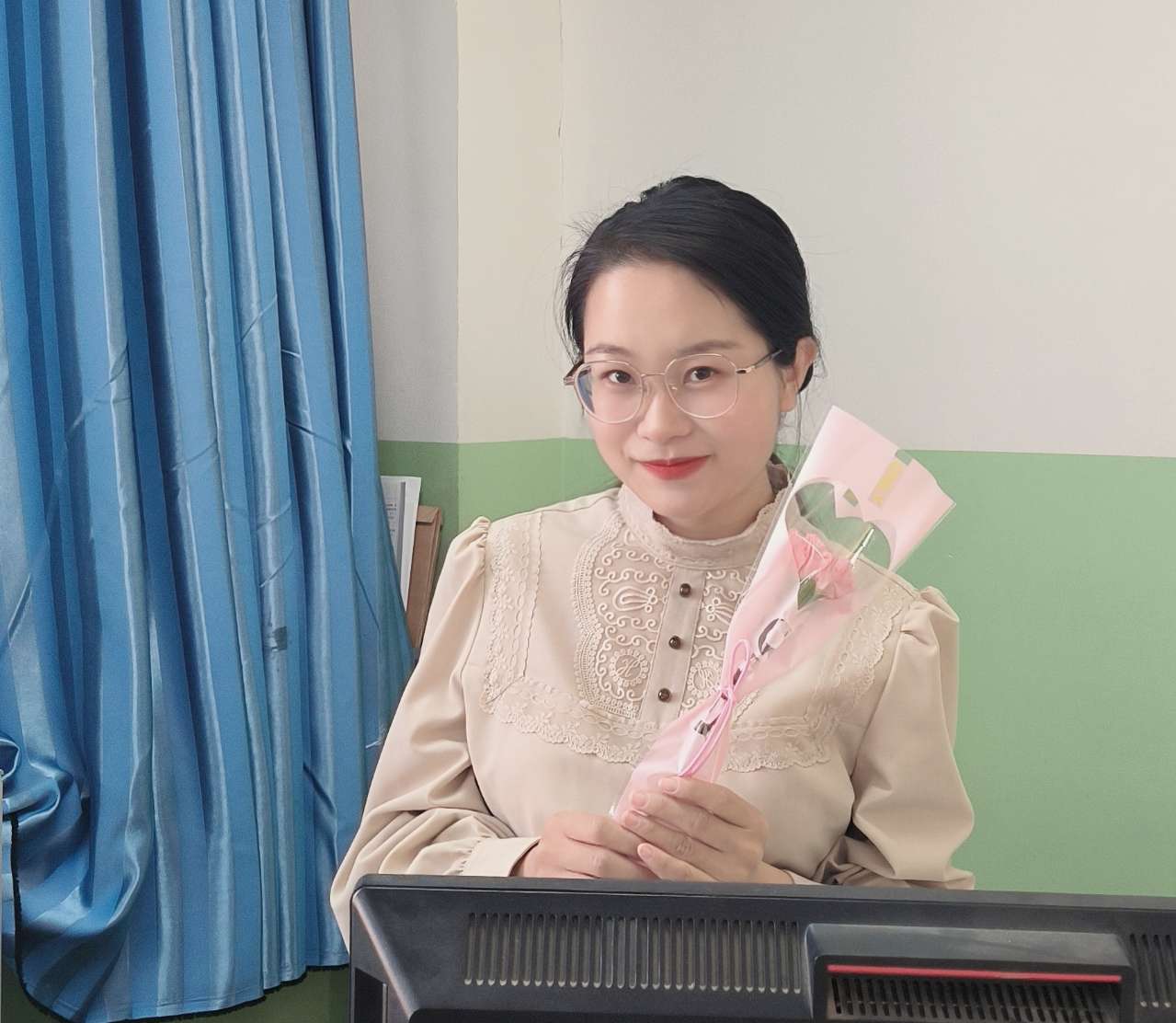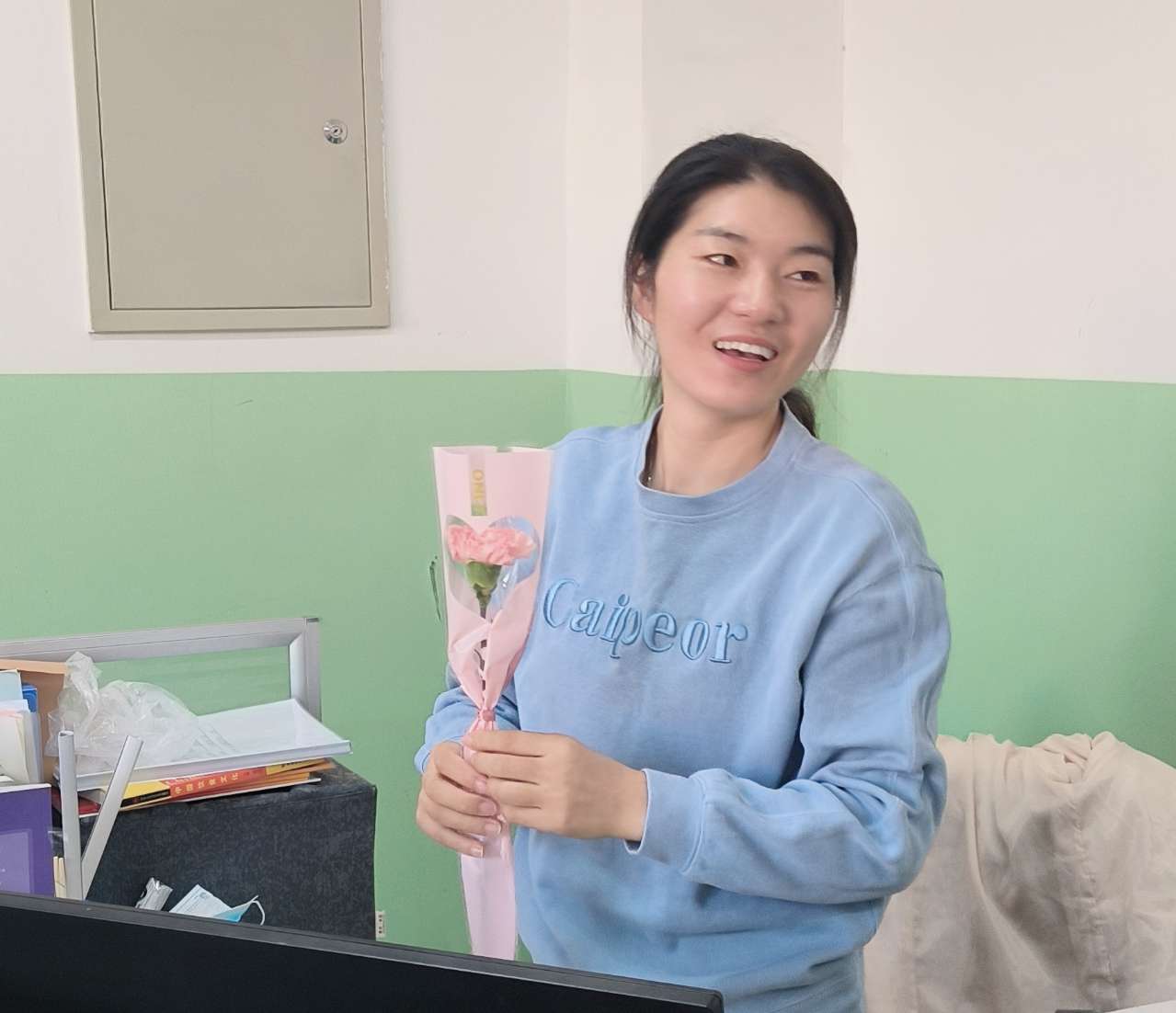 3月8日当天,党总支班子成员自费为大家准备了水果、鲜花,一大早收到美美的鲜花与礼物,老师们都露出了幸福、美丽的笑容。