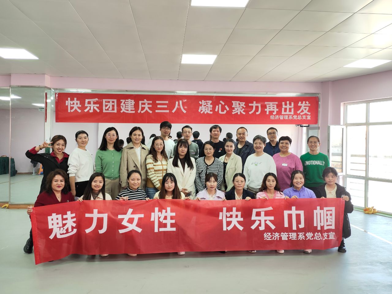 3月7日下午,在这充满春意、充满温柔、充满热情的日子,经济管理系全体教职工相约在学院体育馆体操室,开展以“快乐团建庆三八,凝心聚力再出发”为主题的文体类团建纪念活动,共同迎接第113届“三八”国际妇女节的到来!