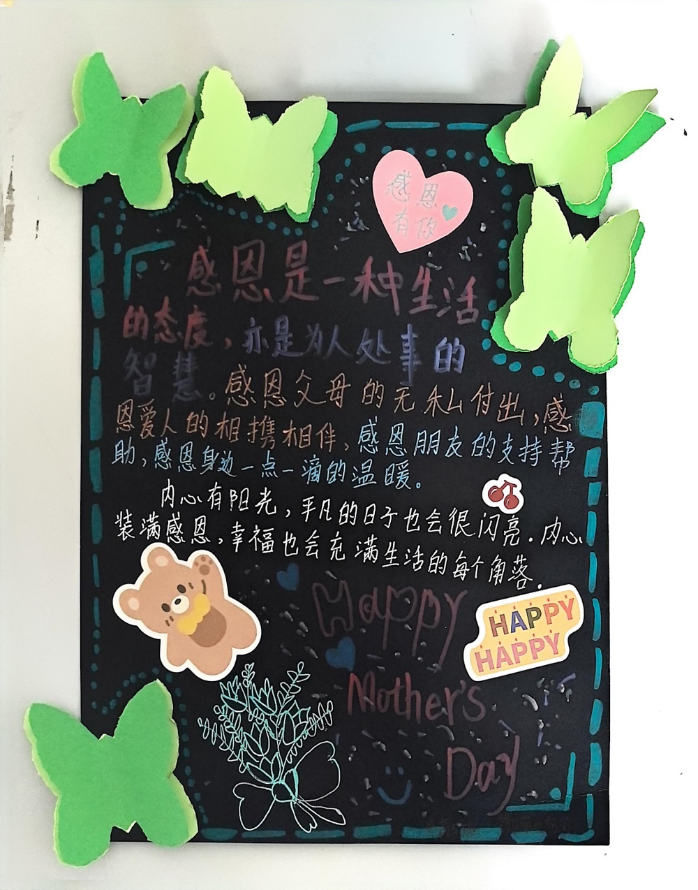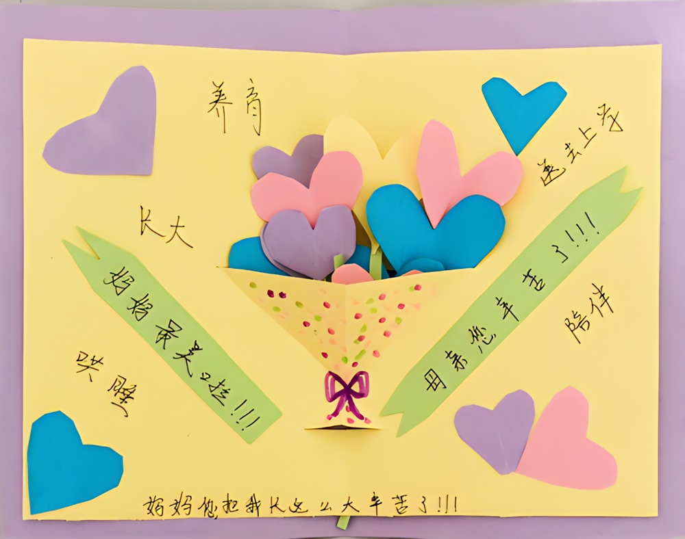 互动环节将活动推向高潮。同学们制作感恩卡片,写下对母亲的感激;围绕 “如何用行动回馈母爱” 展开小组讨论,代表上台分享 “感恩行动周“暖心时刻” 等创意计划,引发热烈交流。