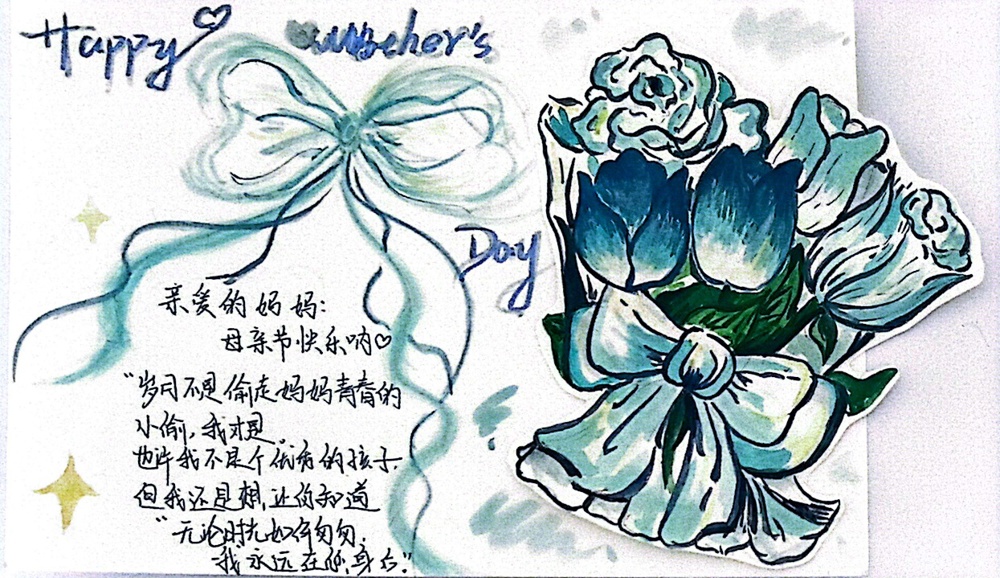 以下是部分学生作品,都表达着对母亲诚挚的爱: