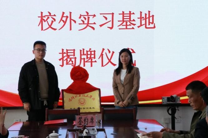 王泽武总经理介绍了公司的业务范围、发展现状及未来规划等相关情况,表示校企合作是新形势下企业发展进步的内在要求,校企双方共同推动校企合作向纵深发展,可以进一步实现双方的优势互补、资源共享、相互促进、共同发展,公司将围绕校企共建的校外实习基地和生产实践教学基地,以真实直播项目运营模式,培养电商直播相关运营岗位的高素质人才。乃比江·亚生院长、王泽武总经理上台代表校企双方签约,随后举行了校外实习基地和生产实践教学基地揭牌仪式,并为三位企业导师颁发了企业指导教师聘书。