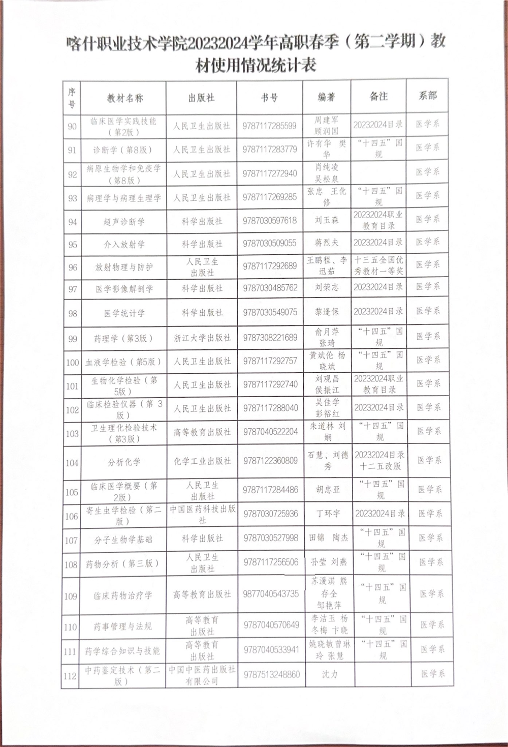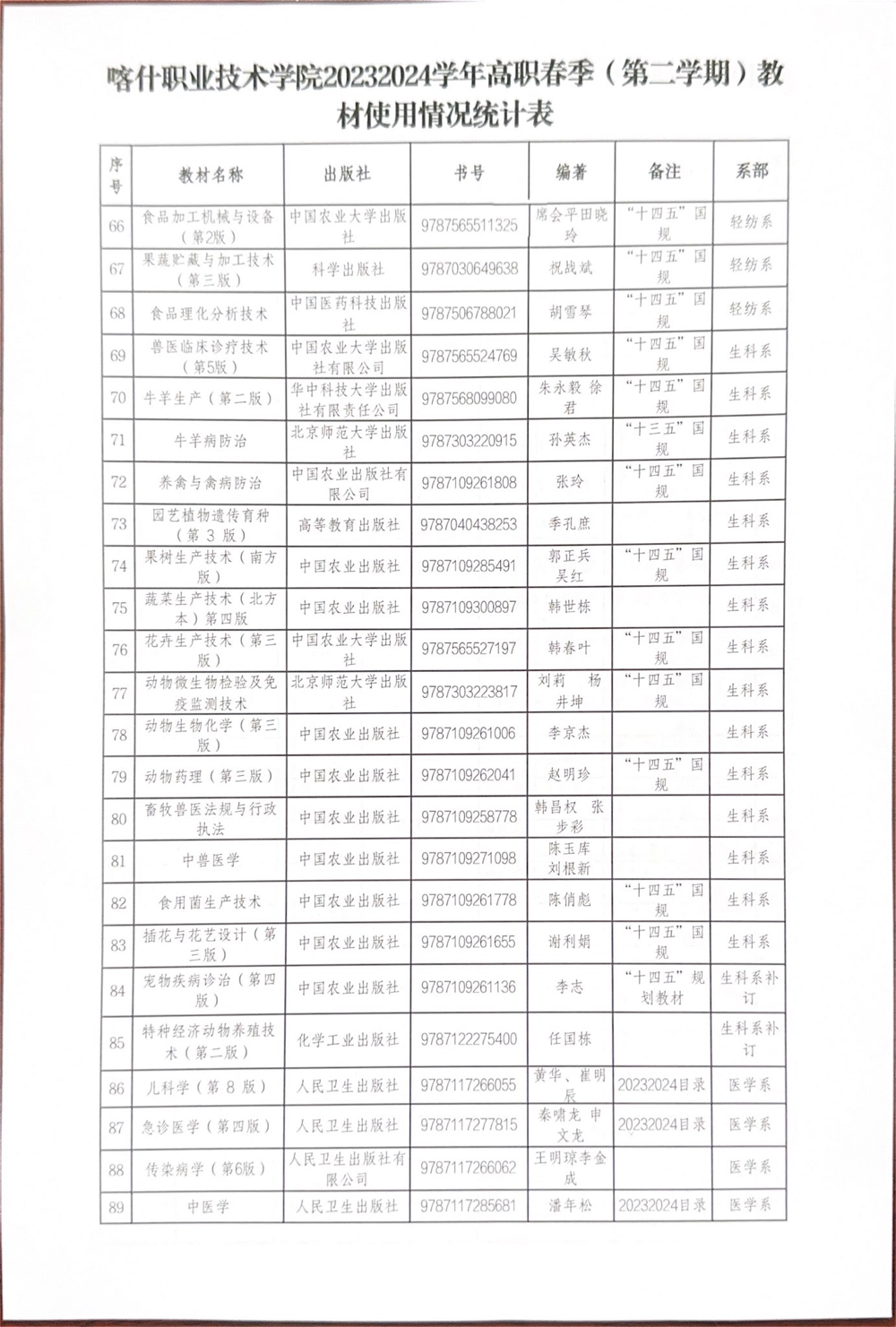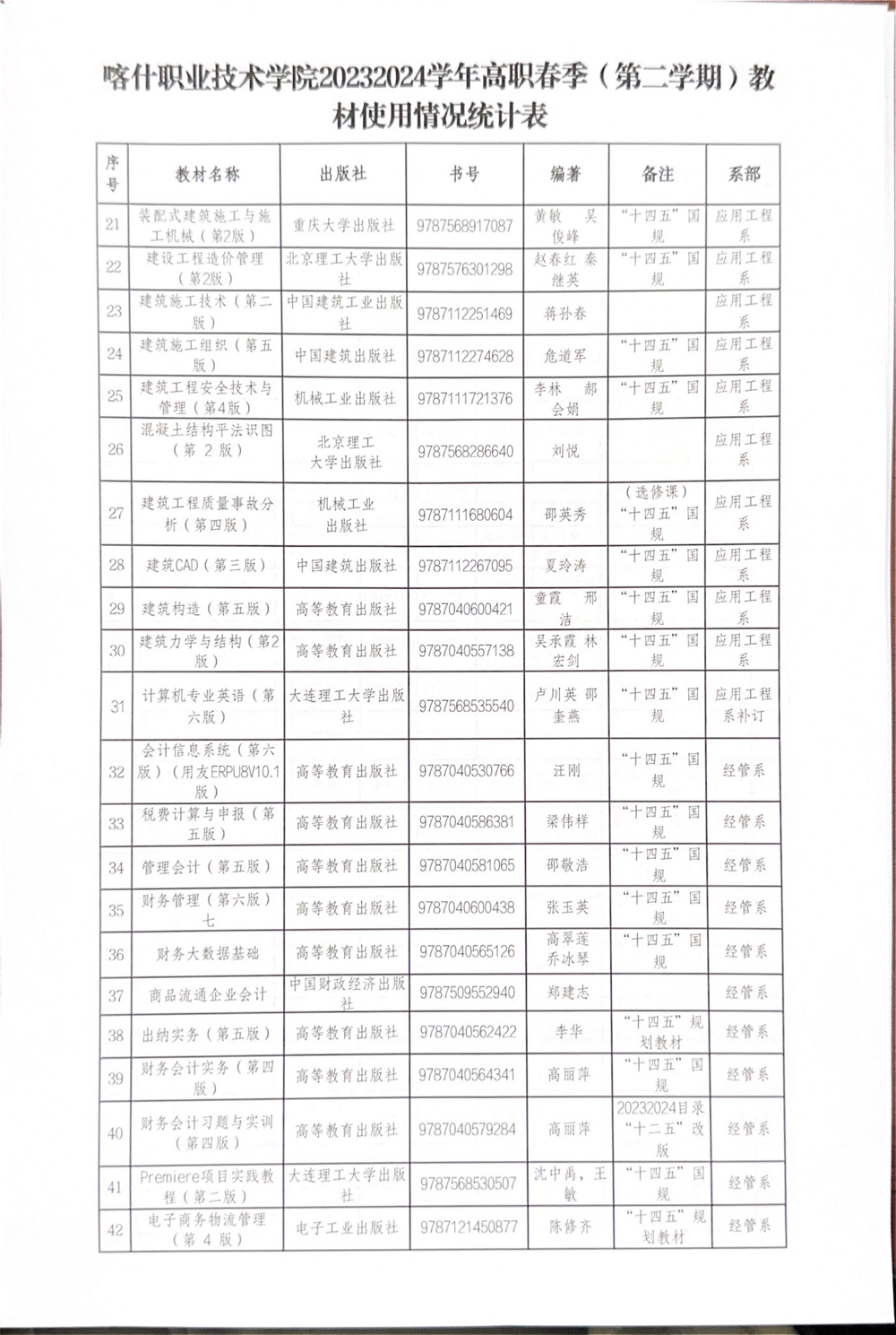 Beat365中文官方网站关于2023-2024学年第二学期高职教材使用情况公示 来源: 发布时间:2024-03-28 17:46:43 浏览次数: 次 【字体:小 大】 终审:教务处 分享到: 【打印正文】