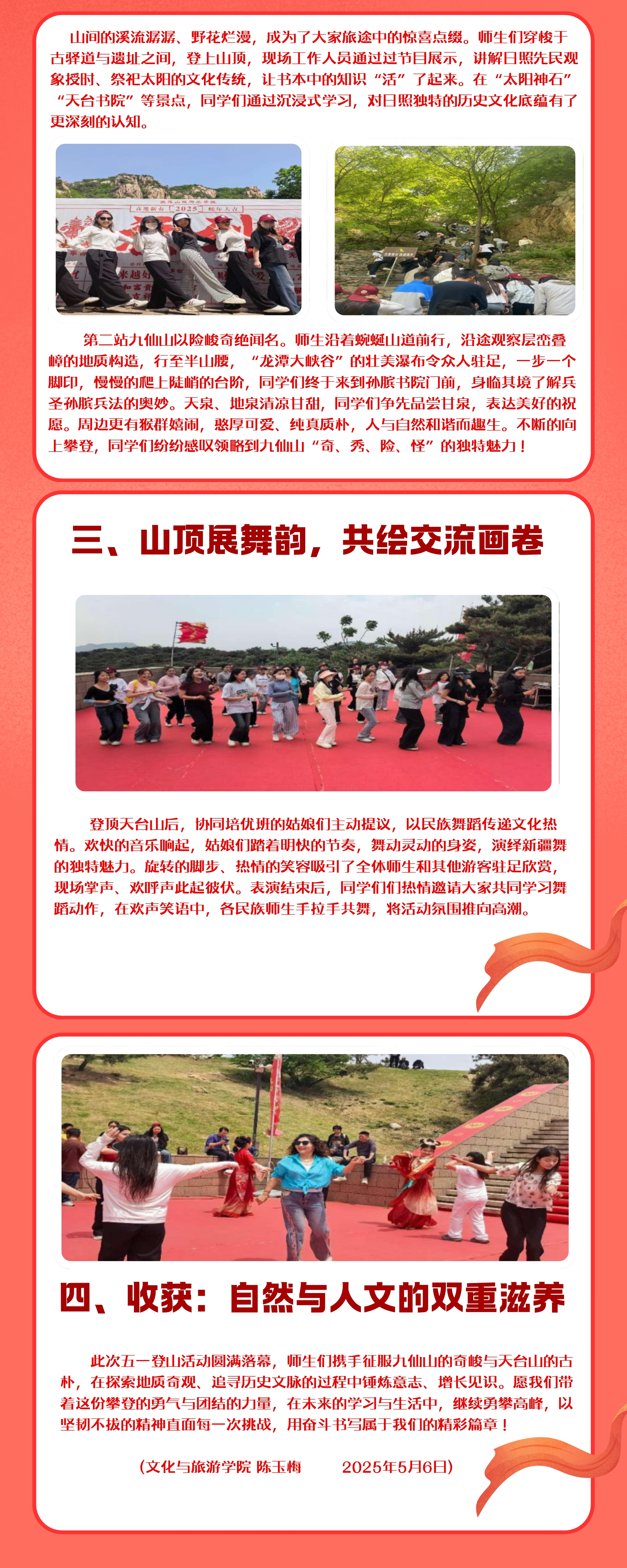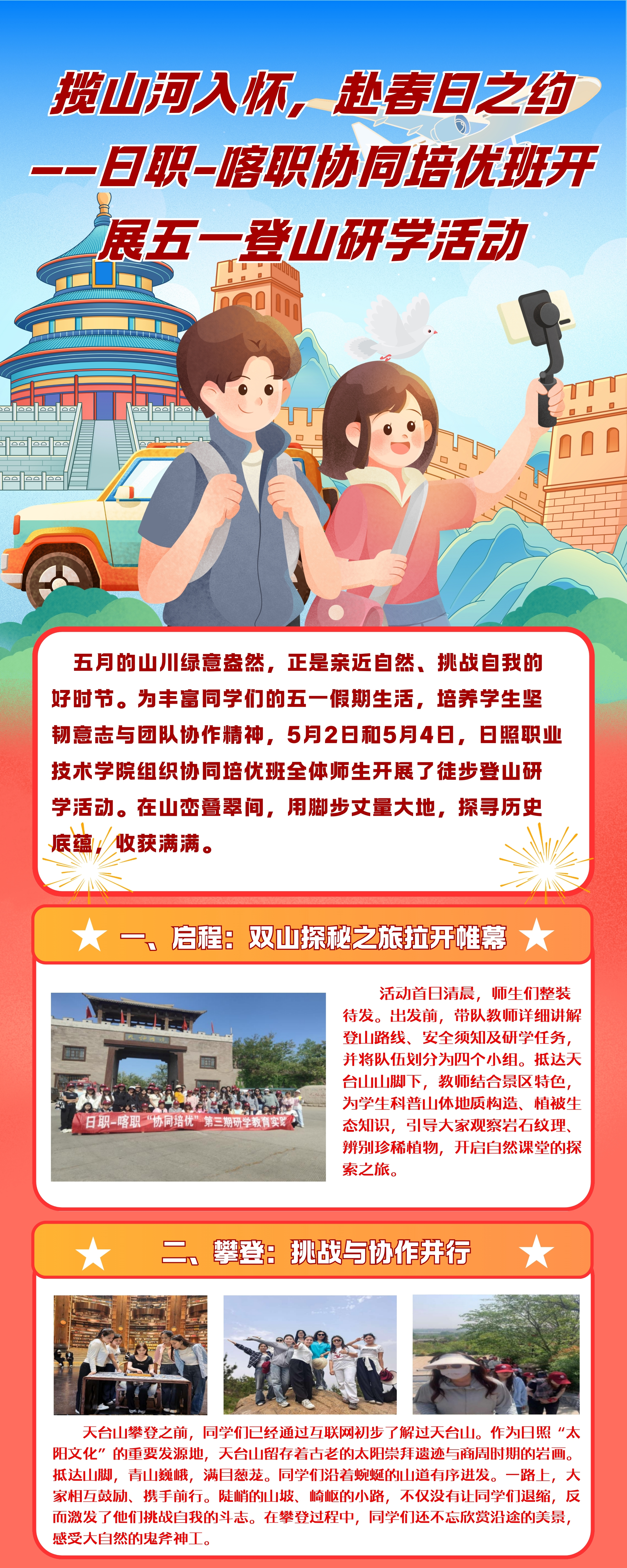 揽山河入怀,赴春日之约 ——日职-喀职协同培优班开展五一登山研学活动 来源: 发布时间:2025-05-09 14:09:49 浏览次数: 次 【字体:小 大】 1 2 终审:教育艺术系 终审:教育艺术系 分享到: 【打印正文】
