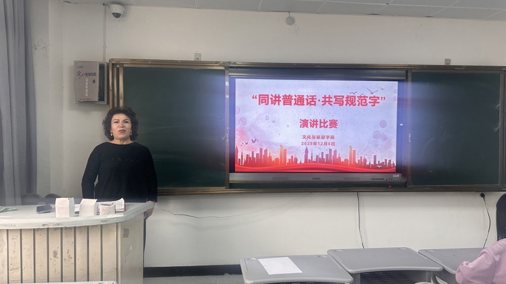 为进一步夯实学院教师语言文字应用基础,全面落实国家语言文字工作相关要求,营造规范、文明、和谐的校园语言环境,文化与旅游学院于2025年12月8日举办“同讲普通话、共写规范字”系列活动之演讲比赛。全院17名普通话未达标教师踊跃参与,以饱满的热情与专业的态度投入赛场。
