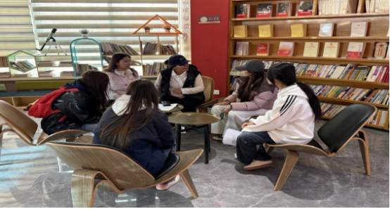 抵达喀什市新时代文明实践中心后,同学们快速融入研学氛围。在思想引领区,场馆讲解员介绍习近平总书记的经典语录、新时代文明实践中心的目标要求与组织构架,让同学们接受了深刻的思想政治教育;社会治理区内,大家通过参与互动换装秀、学习典型人物事迹、开展经典诵读等活动,直观感受法治宣传、民族团结教育、爱国感恩等工作的实践成效,真切体会喀什的发展变迁;文化润疆区的国风馆内,古筝弹奏、各类棋类、书法绘画等实践阵地,为同学们搭建了零距离接触中华传统文化的平台;文明实践区里,同学们与讲解老师深入沟通,各小组踊跃分享初步感悟。在专业讲解员的引导下,大家系统学习了新时代精神文明建设的相关内容,深刻感受新时代党的治疆方略的成功实践,以及新疆70年来基层治理的显著成效,进一步激发了爱党爱国爱社会主义的真挚情感,树立起“请党放心,强国有我”的青春志向。
