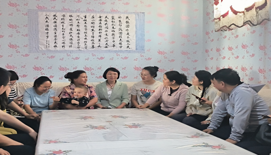 包粽子活动结束后,全体思政课教师与工作队、村两委一同前往11村北京巷农户伊巴古丽家,开展“行走的思政课”。在伊巴古丽家中,教师、村委会干部和村民围坐在一起,聆听她讲述自家的生活变迁、自己如何培养子女以及邻里如何互帮互助的故事。这些发生在身边的真实故事,生动展现了各民族之间相互尊重、相互关心、相互帮助的情谊。随后,党员教师结合自身工作实际,分享了对民族团结的认识和感悟,纷纷表示要在今后的工作中,积极践行民族团结理念,为促进各民族共同繁荣发展贡献力量。