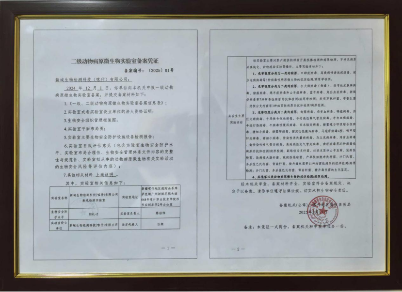 [新域检测实验室]是目前唯一在喀什地区畜牧兽医局备案,可以合法对外提供动物疫病精准检测的第三方实验室。