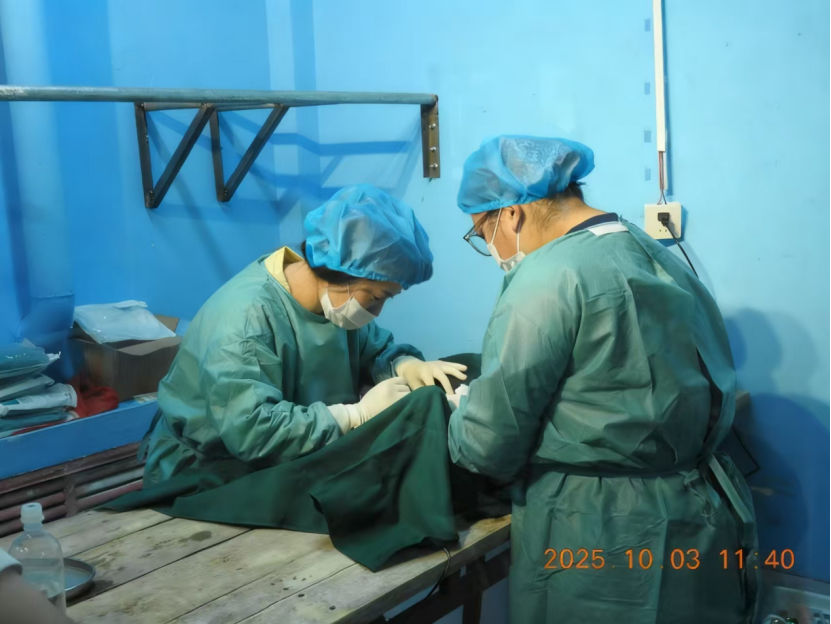 此次培训由Beat365中文官方网站现代农学院动物医学教研室教师丁洁带队,带领动物医学专业张怡然、陈浩伟、杨守朋同学一行4人,于2025年10月1日至10月6日在玉树州结古镇集中开展救助与培训。