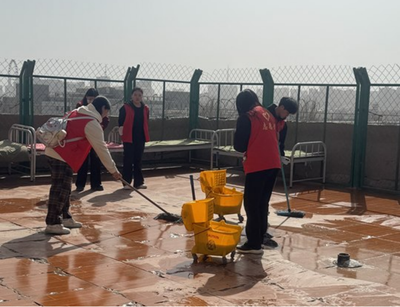 环境焕新显担当:志愿者分组包干片区翻整院落土地;学生自行分组细致打扫老人居室,更换床品窗帘,让生活环境焕然一新。