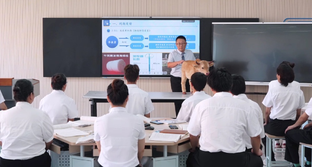 获奖项目创新性构建"企业导师+专业教师+学生团队"三元协同机制,通过校企深度合作实现资源互补:企业导师提供产业一线经验与技术指导,专业教师负责理论体系构建,学生团队在真实项目场景中完成能力转化。项目将智能繁育技术(如发情监测系统、超数排卵技术)、胚胎移植等畜牧领域前沿技术模块化融入课程体系,首创"项目制教学"模式——以良种繁育实际需求为导向设计教学任务,使理论课堂与牧场实践无缝衔接,真正实现"课堂即牧场,作业即生产"的产教融合目标。