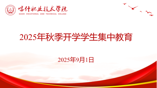 为落实2025年秋季学期“开学第一课”相关要求,助力2024级学生坚定理想信念、厚植喀职情怀、树立正确世界观、人生观、价值观,9月1日至3日,学生工作处统筹组织该年级学生开展集中教育活动。