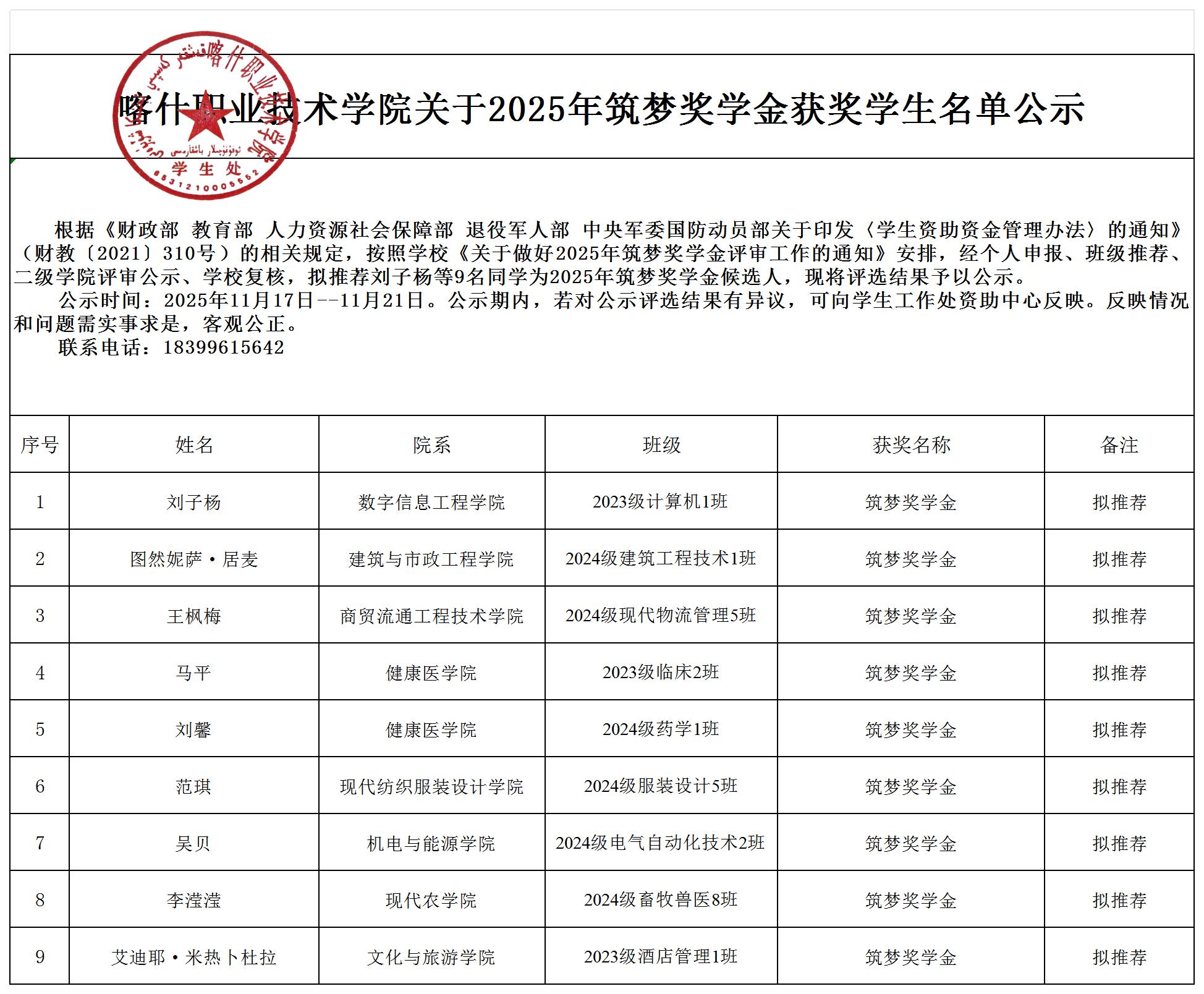 Beat365中文官方网站关于2025年筑梦奖学金获奖学生名单公示