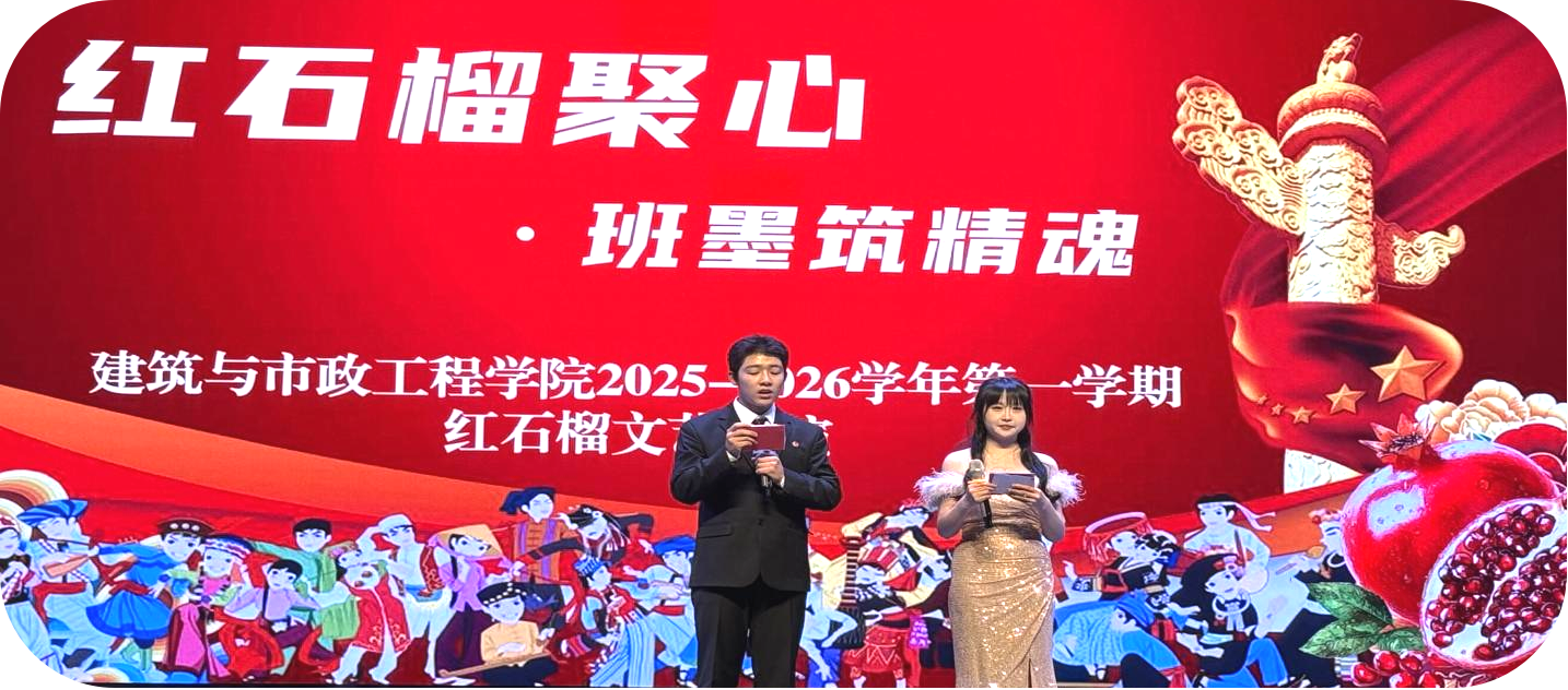 本次“红石榴”文艺汇演的成功举办,进一步弘扬了鲁班墨子文化,凝聚了共识,鼓舞了斗志,激励建筑与市政工程学院全体师生在新的一年里,以更加团结的姿态、更加饱满的热情,携手并肩,砥砺前行!