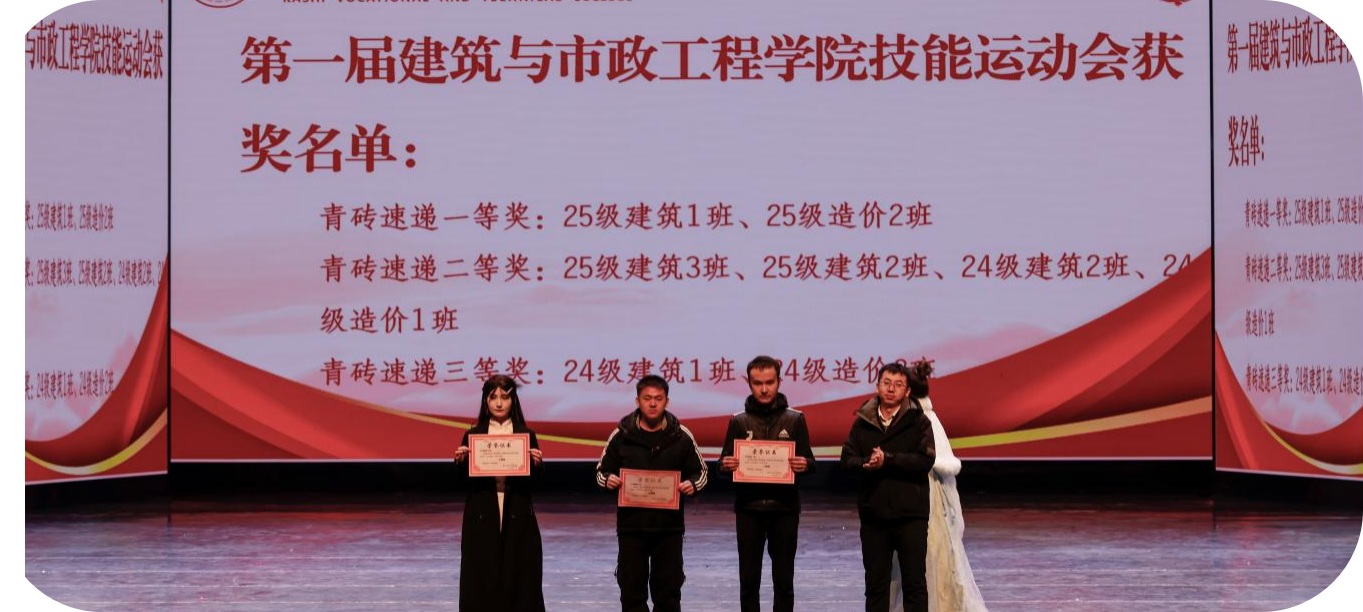 获奖选手依次上台领奖,接受掌声与荣誉。从笔墨间流淌的文化底蕴,到创新创业中的规划与奋进,再到赛场上展现的专业技艺,每一个奖项都凝结着同学们勤学苦练、匠心钻研的汗水,也是“精益求精、兼爱非攻、务实创新”的班墨文化精神的生动实践。