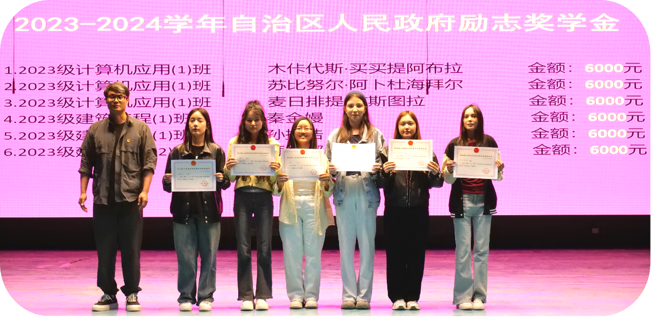 活动伊始,阿迪力江·喀德尔院长为国家奖学金、国家励志奖学金获得者伍达华、马赫阳、迪丽努尔·依敏江等11位同学颁发荣誉证书并合影留念。学工办马伟杰老师为自治区人民政府励志奖学金荣誉获得者景嘉伟、苏比努尔·阿卜杜海拜尔等6位同学颁发荣誉证书并合影留念。