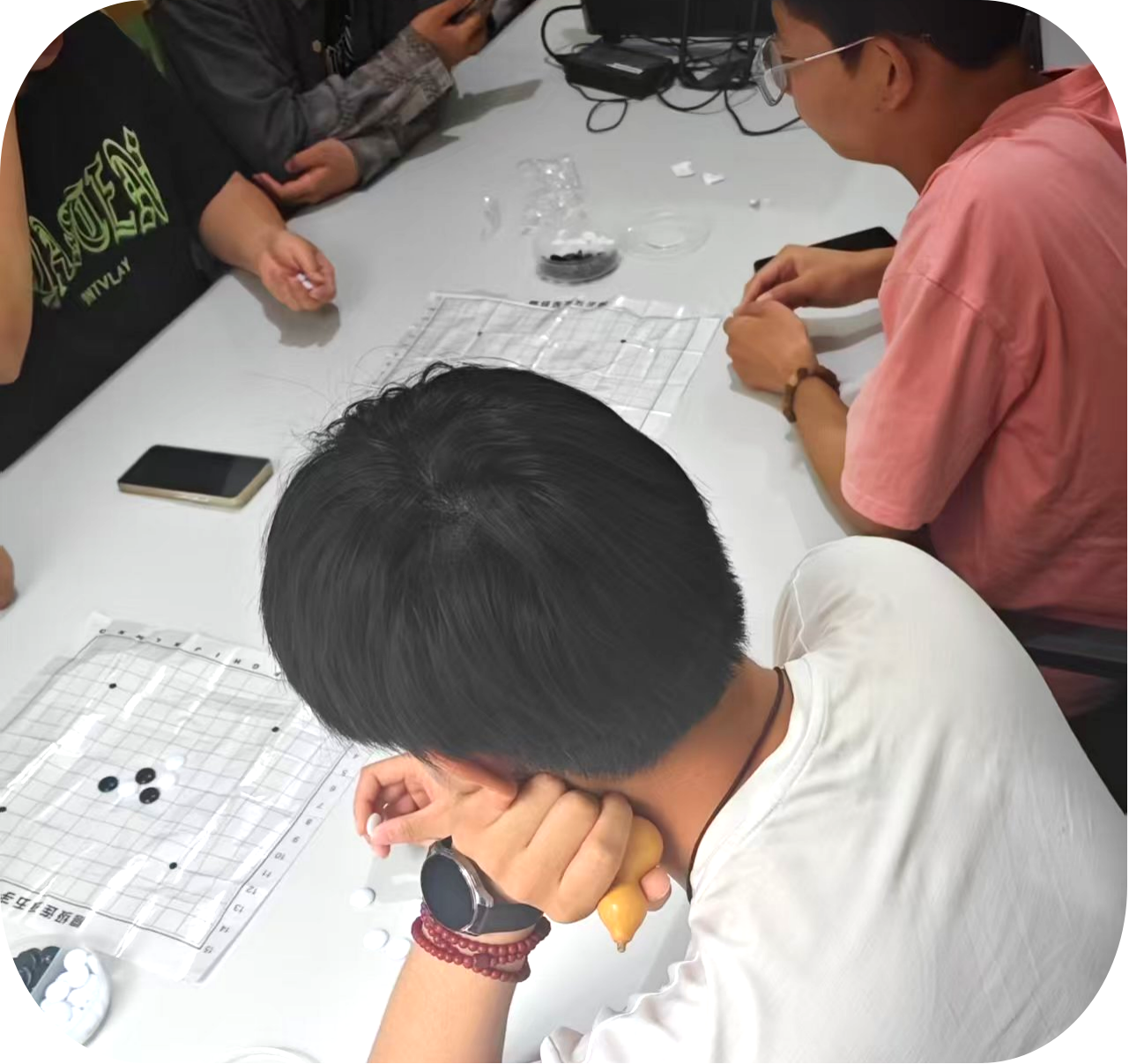 男子组比赛则在18号公寓楼108室火力全开。选手们剑拔弩张的气息,如鹰隼般死死锁定棋盘,空气中仿佛凝结着无形的硝烟,时而拧眉审视全局,时而极速推算步数,每一次落子都带着破釜沉舟的狠劲,仿佛要在这方棋盘上拼出重围,让胜利的旗帜在楚河汉界间猎猎作响。