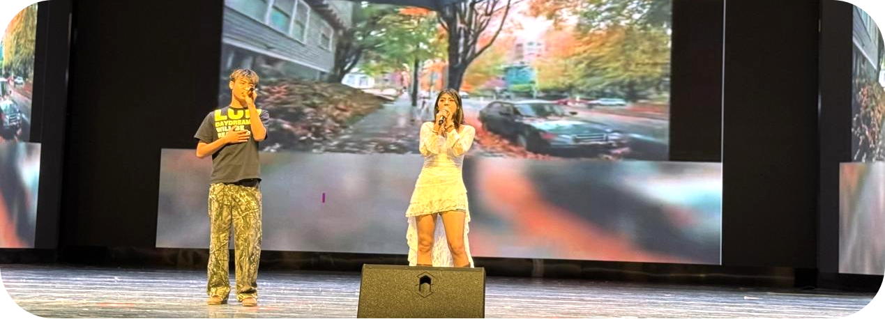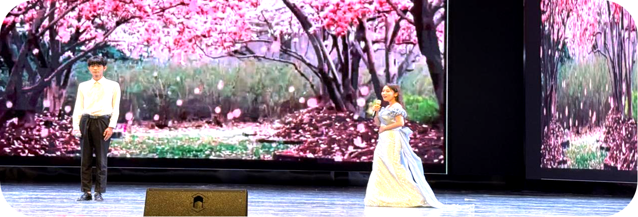 艾丽娜孜、李瑞康同学的深情对唱《最后一页》温柔而悠扬,在报告厅歌声回荡,宛如诉说着深沉的情感和离别的不舍,为现场观众带来了一场浪漫的听觉盛宴。