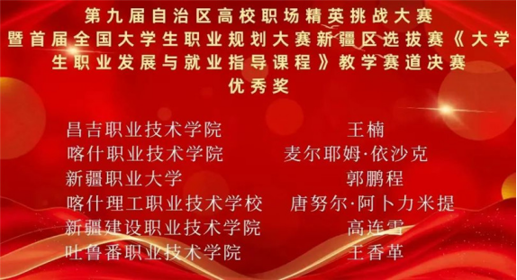 《大学生职业发展与就业指导课程》教学赛道新疆区决赛中荣获优秀奖