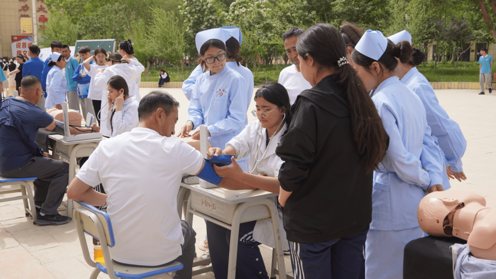 医学与保育教研室展示区聚焦健康与关怀;在心肺复苏技术演示区,专业教师严格按照国际标准,完整演示了从意识判断、紧急呼救到胸外按压、开放气道和人工呼吸的全流程急救操作,动作精准规范;血压测量区则化身"微型诊室",学生们熟练操作血压计并同步讲解健康知识,误差控制在±3mmHg以内,展现出扎实的专业功底。幼儿保育专业通过情景模拟,生动演绎了婴幼儿急救、早教互动等"保教融合"的现代保育模式,既有规范的安全照护操作,又融入音乐抚触等创新方法。整个展区通过理论结合实践的沉浸式展示,既彰显了医学与保育专业的教学成果,更传递了"技能守护生命,专业传递温度"的职教理念。