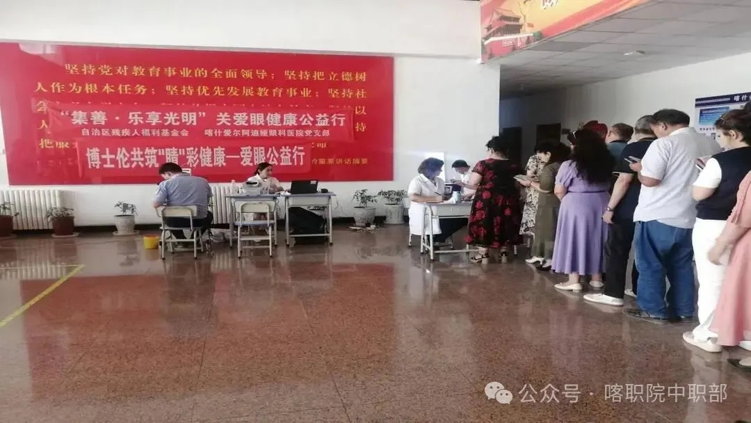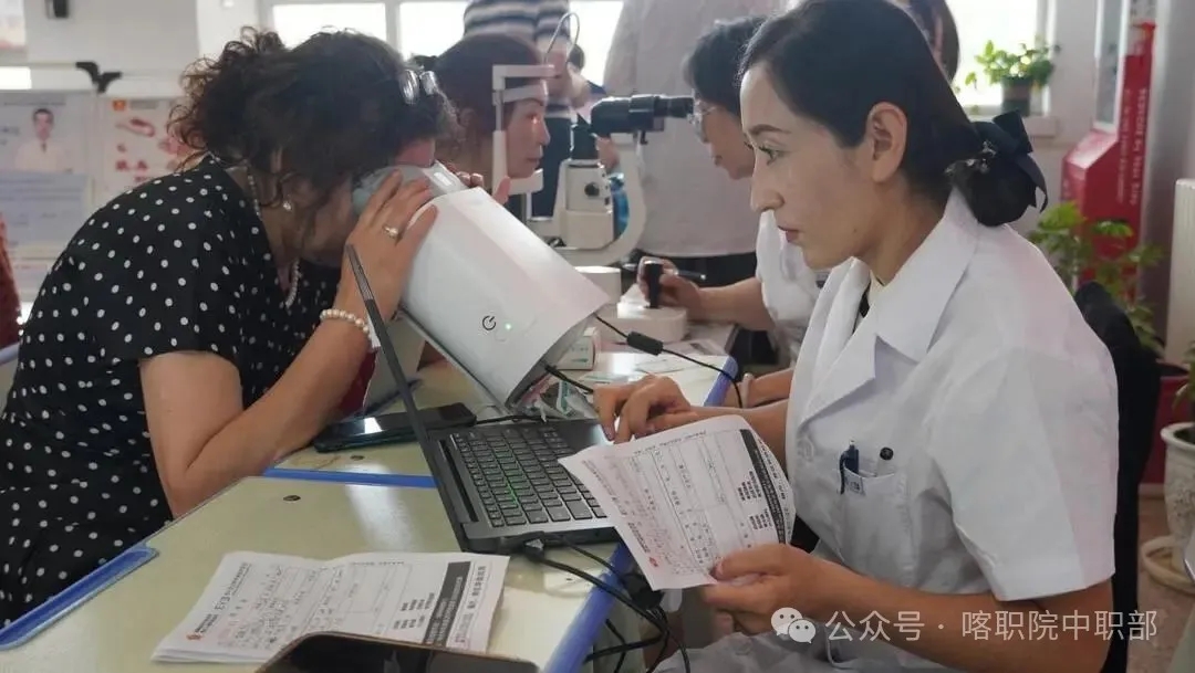 2025年6月11日下午,喀什爱尔阿迪娅眼科医院的专家、医护人员走进中职校园开展眼保健讲座义诊活动。中职部部分教师及学生参加了活动。
