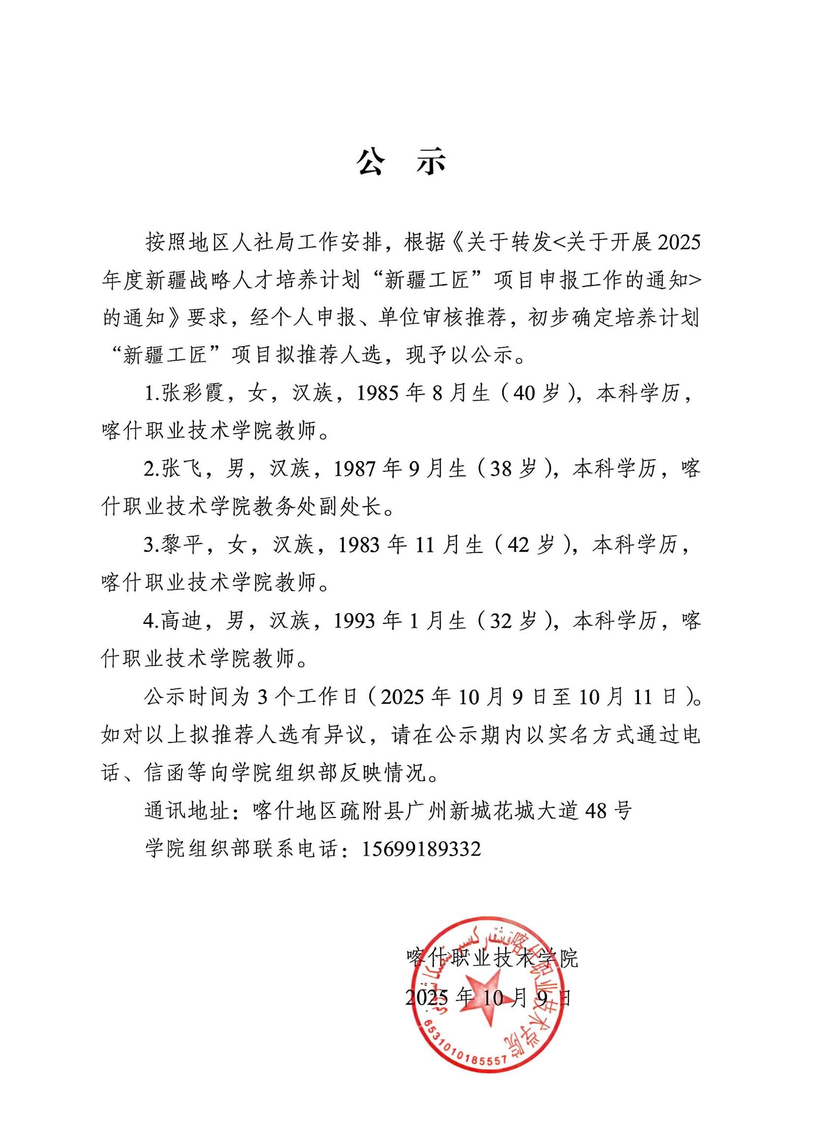 2025年“新疆工匠”申报项目公示